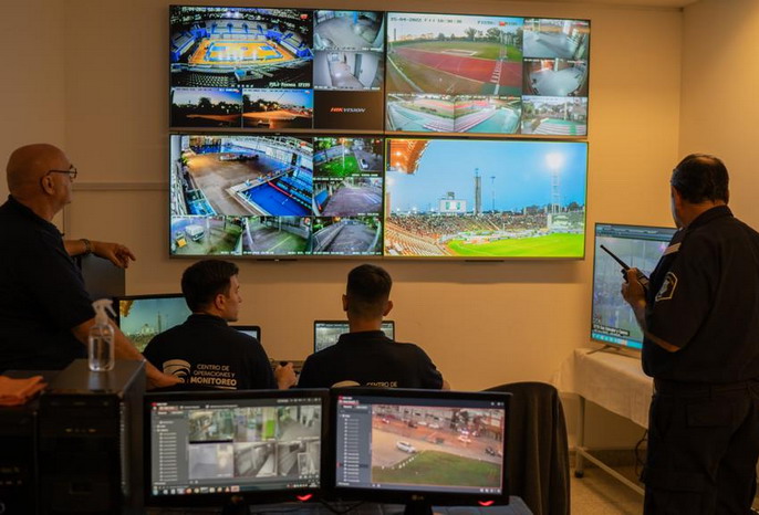 Al momento se colocaron más de 40 cámaras de seguridad en sectores de circulación y escenarios con las cuales se realiza el seguimiento y monitoreo del público y de los jugadores en cada partido de fútbol, además de la previa y la salida.