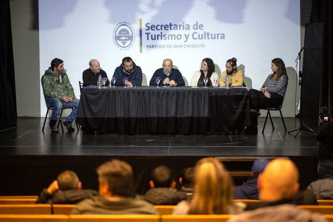Acompañado por el secretario General, Walter Wischnivetzky; el secretario de Turismo y Cultura, Germán Montes; la jefa Distrital de Educación, Verónica Serantes; la coordinadora de Educación, Sofía Garu; Lucio Alvarez y Luciano Comte, miembros del equipo interdisciplinario de la Escuela Municipal de Cine, el intendente Jorge Paredi presentó la nueva Escuela Municipal de Cine del Partido de Mar Chiquita en el Cine Teatro Leonardo Favio de Santa Clara del Mar.