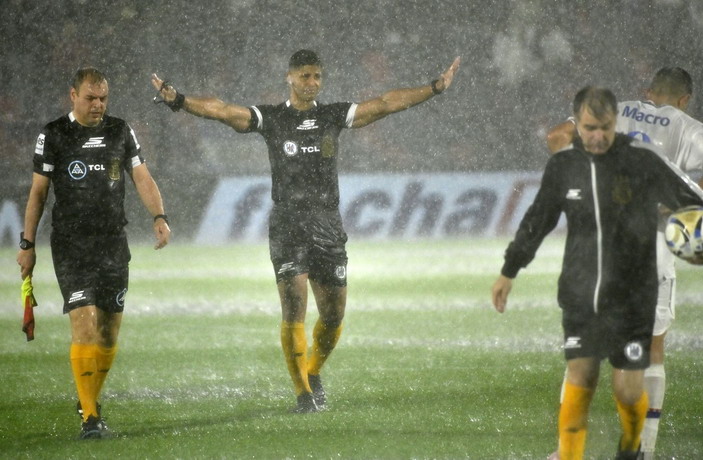 La zona norte del Gran Buenos Aires sufrió el embate de lluvias intensas que transformaron el estado del campo en insalubre. La pelota dejó de rodar de forma natural, los rebotes se volvieron impredecibles y el césped cedió ante el aguacero: apenas podía mantenerse firme. A eso se sumÓ un corte de luz en el estadio debido a los estragos del diluvio.