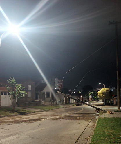 El balance preliminar es preocupante: cinco árboles de gran porte fueron derribados, varios de ellos sobre la vía pública; dos postes cayeron y demandaron la intervención de EDEA; se registraron daños en dos semáforos, una columna de alumbrado público y dos columnas de telefonía, dejando sectores a oscuras y con complicaciones en el tránsito. Además, Obras Sanitarias debió trabajar durante la madrugada para solucionar inconvenientes provocados por el viento, en un contexto climático adverso.