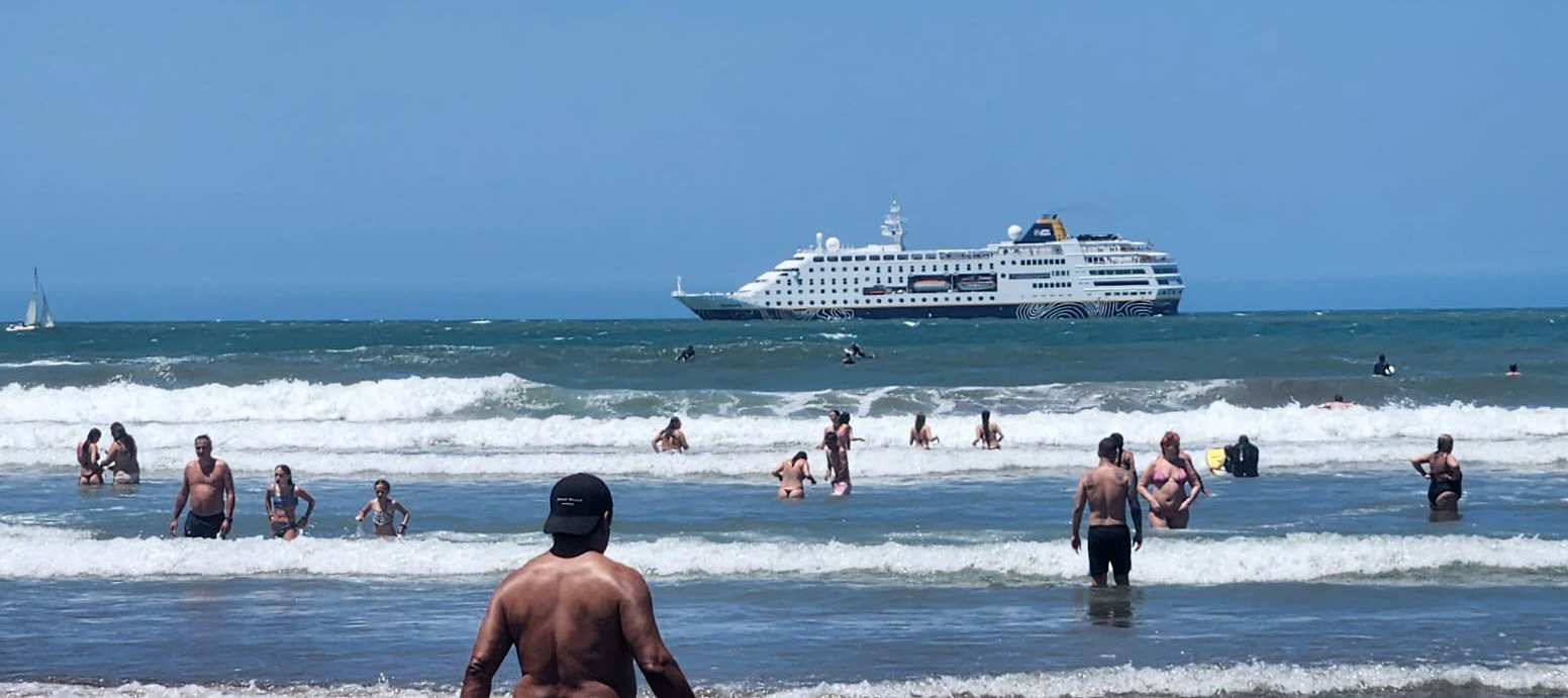 La embarcación amarró en las primeras horas de la mañana y decenas de pasajeros descendieron para participar de una visita guiada por la ciudad. El buque zarpó a primera hora de la tarde para continuar su recorrido rumbo al sur argentino.