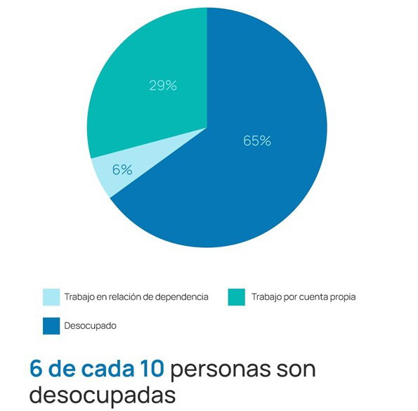 El alarmante del informe se centra en el mercado de trabajo. Según el relevamiento, aproximadamente seis de cada diez personas en estos sectores se encuentran desocupadas. Sin embargo, para quienes cuentan con algún tipo de ingreso, la situación no es mucho más alentadora. La mayoría de la población activa se desempeña por cuenta propia en tareas de subsistencia, como el “changueo” informal, la venta ambulante o el reciclaje urbano.