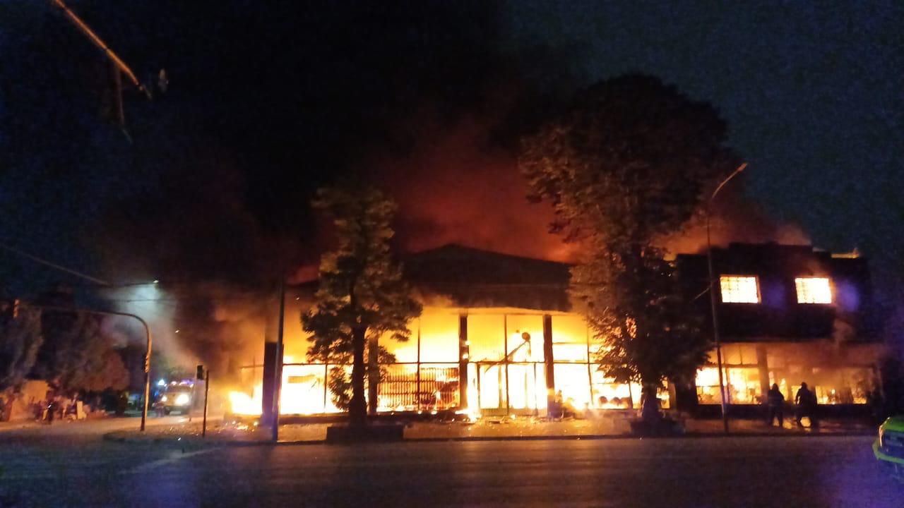El siniestro se desató durante la madrugada de este martes en la intersección de Perú y Colón. Los bomberos trabajaron durante más de cinco horas para contener las llamas que afectaron gravemente a dos comercios. Hubo tres heridos leves y cortes totales de tránsito que se mantienen en la zona.