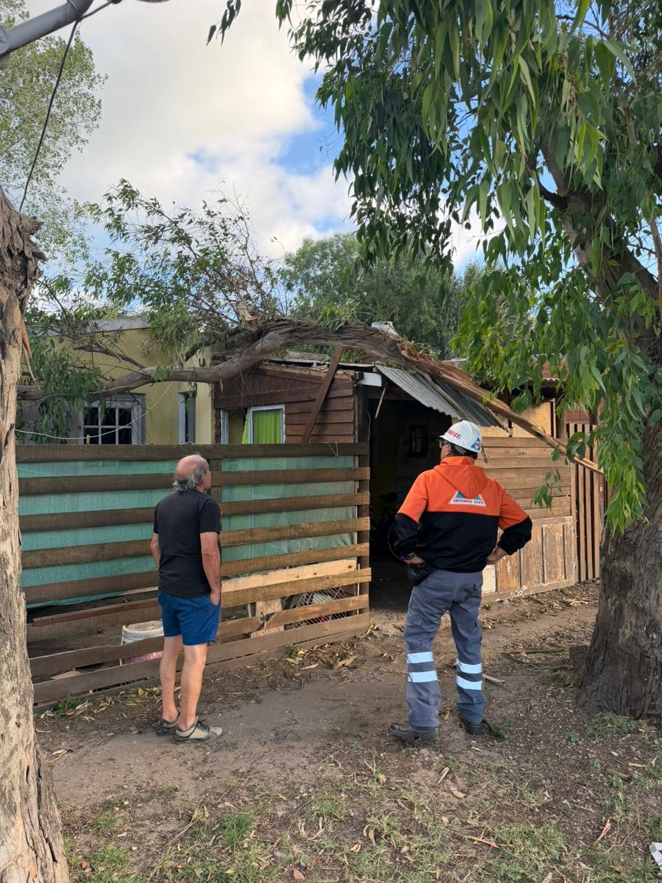 Como consecuencia del fenómeno, se reportó la caída de dos ramas de gran tamaño sobre viviendas: una en el barrio Félix Ucamet y otra en el barrio Las Dalias.