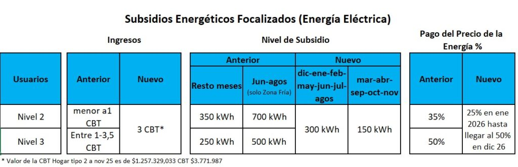 Asimismo, la resolución también adapta los cuadros tarifarios al Régimen de Subsidios Energéticos Focalizados (SEF), que reemplaza la segmentación por niveles de ingresos. A partir de ahora, el esquema establece una categoría única de usuarios residenciales beneficiarios, con topes de consumo base de 300 kWh o 150 kWh mensuales, según la época del año.