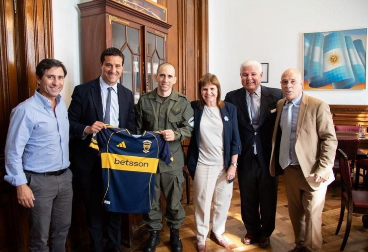 Durante la reunión, de la que participaron los senadores Patricia Bullroch, Bartolomé Abdala,, Agustín Monteverde, Vilma Bedia y Martín Goerling, Abad le entregó una camiseta de Boca Juniors como gesto simbólico.