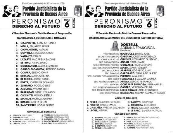 En la vereda de enfrente, la Lista 6 “Peronismo Derecho al Futuro” está encabezada por Adriana Donzelli, secretaria general de SADOP Buenos Aires, con fuerte anclaje en el movimiento sindical y alineamiento directo con la gestión provincial de Kicillof. Su lista sumó en el tramo final al espacio que orbitaba alrededor de Rodolfo Iriart, quien se bajó de la carrera tras un encuentro con el propio gobernador. La explicación formal habló de “integración”. En la trastienda, circularon lecturas más pragmáticas.