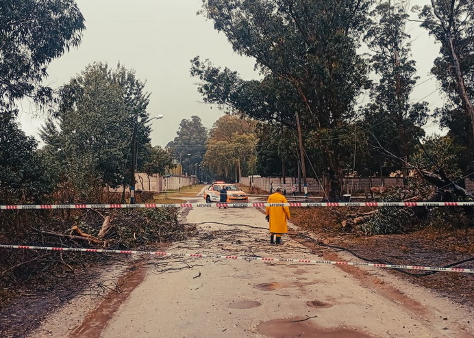Entre las intervenciones más relevantes, se destaca la caída de un árbol sobre un vehículo estacionado en Santa Fe al 1600, donde al arribo del personal se constató que no había ocupantes y se procedió a retirar el ejemplar para eliminar el riesgo y liberar la vía pública. Asimismo, en la intersección de Colón y Buenos Aires se trabajó sobre la caída de un árbol de gran porte que obstruía la calzada.