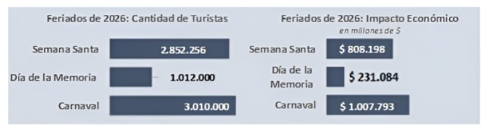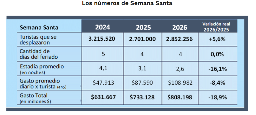 En total, 2.852.256 personas se movilizaron por distintos puntos del país, lo que implicó un crecimiento del 5,6% en comparación con 2025. Sin embargo, el impacto económico alcanzó los $808.198 millones y, al descontar la inflación, evidenció una retracción interanual del 18,9%.