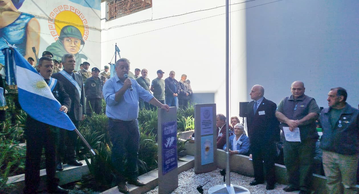 La donación del mástil y las placas estuvo a cargo de la agrupación Soldados Continentales, que agrupa a conscriptos de las tres fuerzas armadas que en 1982 cumplieron funciones de apoyo logístico, traslado de armas y municiones, recepción de heridos y custodia de pistas en el territorio continental e insular, sin ser trasladados a las islas. Su referente local, Daniel Luque, tomó la palabra durante el acto para enmarcar el gesto en una búsqueda de reconocimiento que lleva décadas: “Nosotros cumplimos nuestro deber y el rol de combate que nos fue asignado. Jamás intentaremos igualarnos a los ex combatientes, eso es imposible, pero seguimos buscando la reivindicación y el lugar que nos merecemos.”