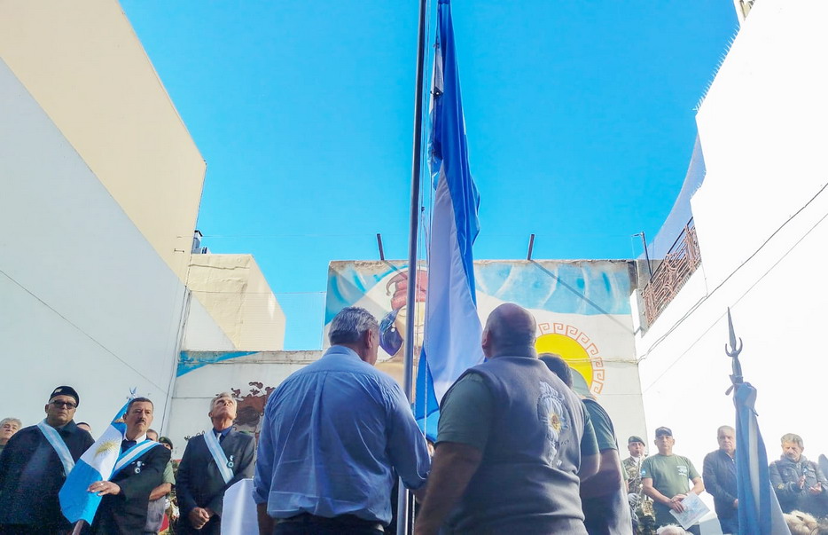 El acto incluyó el izamiento de la Bandera de Ceremonia, la entonación del Himno Nacional y la Marcha de Malvinas, y la presencia de autoridades gremiales, políticas y diplomáticas, entre ellas el Secretario Adjunto de la CGT Miguel Guglielmotti, el concejal Diego García y el cónsul honorario de Rusia, Jorge Kuznetzov.