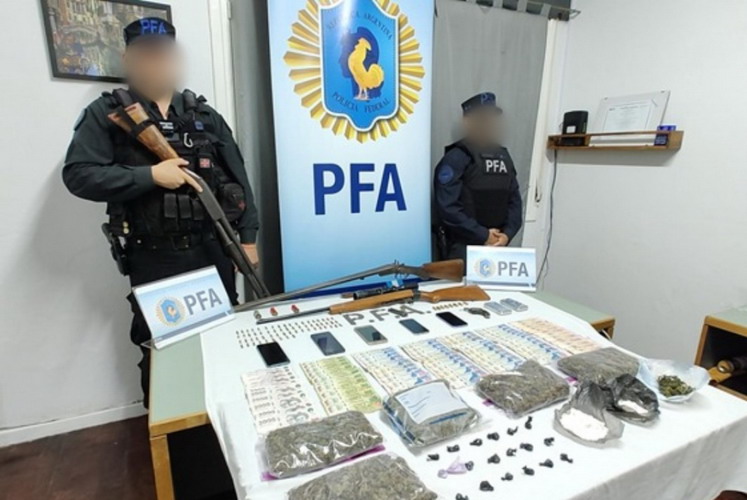 En un procedimiento impulsado por el Ministerio de Seguridad Nacional , agentes del Departamento Federal de Investigaciones (DFI) de la Policía Federal Argentina (PFA) desarticularon un punto de venta de drogas en la mencionada ciudad y detuvieron a un sujeto y a su hijo por venta de estupefacientes al menudeo.
