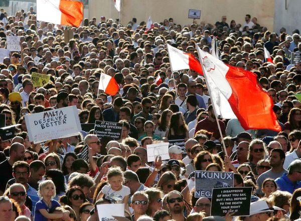 Los malteses exigen en una gran movilización respuestas sobre el asesinato de la periodista