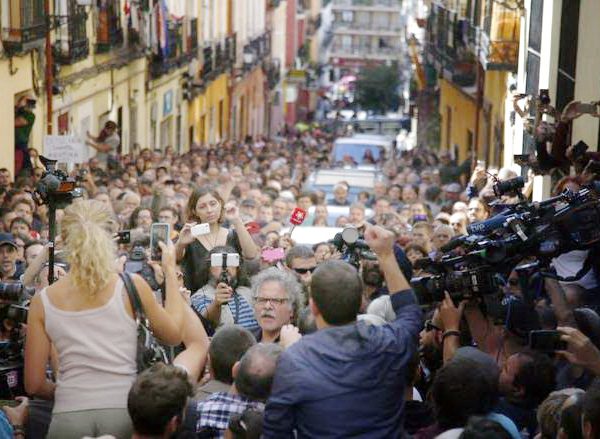Decenas de personas han colapsado esta mañana los accesos al Teatro del Barrio, en pleno corazón de Lavapiés, donde f…