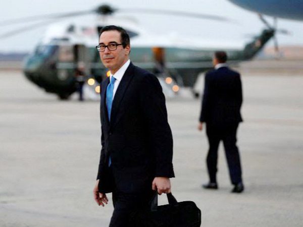 El secretario del Tesoro de EEUU, Steve Mnuchin, recibió en su residencia de Los Ángeles un paquete de felicitación n…