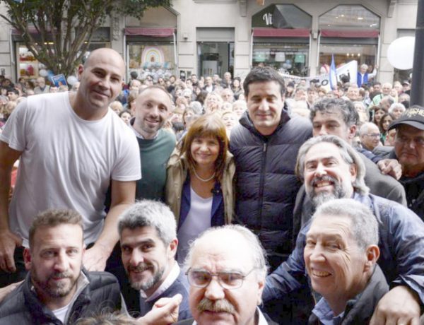 Patricia Bullrich unto al candidato a Gobernador de Buenos Aires, Néstor Grindetti, al candidato a Jefe de Gobierno d…