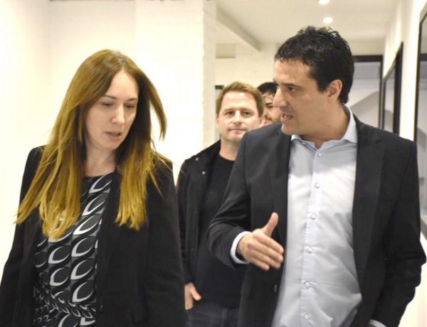 El titular de la UCR bonaerense, Maximiliano Abad, recibió a la diputada nacional del PRO, María Eugenia Vidal, acom…