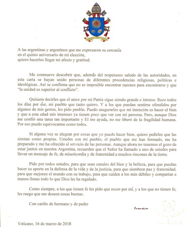 El papa Francisco envió una carta a todos los argentinos