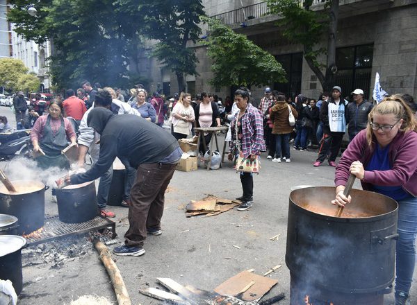 Diferentes organizaciones sociales se movilizaron este martes y realizaron ollas populares en las puertas del Municip…