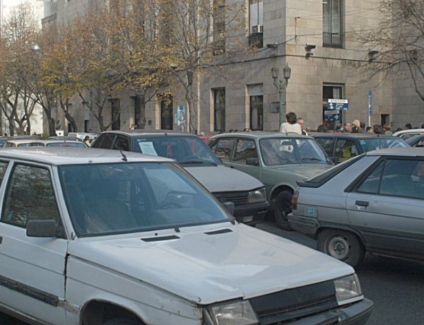 En el marco de la protesta que realizaron este jueves decenas de remiseros truchos en las puertas del municipio para …