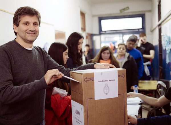 El precandidato a primer concejal Ariel Cholo Ciano llegó hasta la Escuela N° 20, en su auto y acompañado de su mujer…