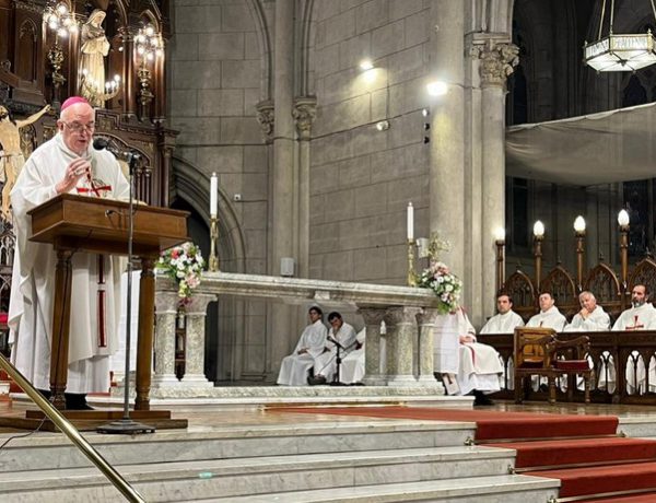 Monseñor Giobando en su primer misa luego de asumir en la Diocesis marplatense